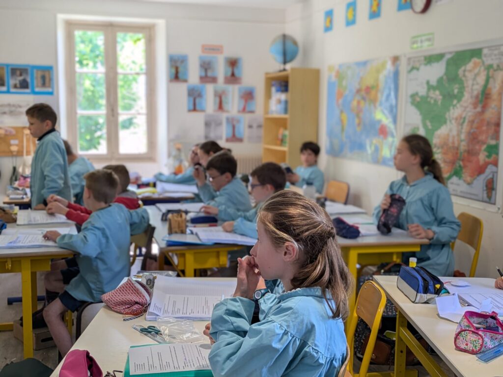 - un apprentissage explicite du geste d’écriture et une attention particulière apportée au soin et à la présentation (lignage des cahiers adapté, écriture au stylo plume, copie quotidienne)